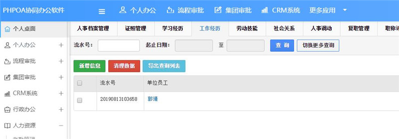 工作经历是进入企业工作的一扇不可避免的大门,而进入企业后,企业为了更好地管理员工,都会对员工的工作经历进行规范化管理,方便以后的升职、调岗需要。为了更方便的管理企业各员工的工作经历,PHPOA负责人提到了oa系统,oa系统是一个协同办公自动化系统,它能帮助企业提高工作效率,打破部门局限。
